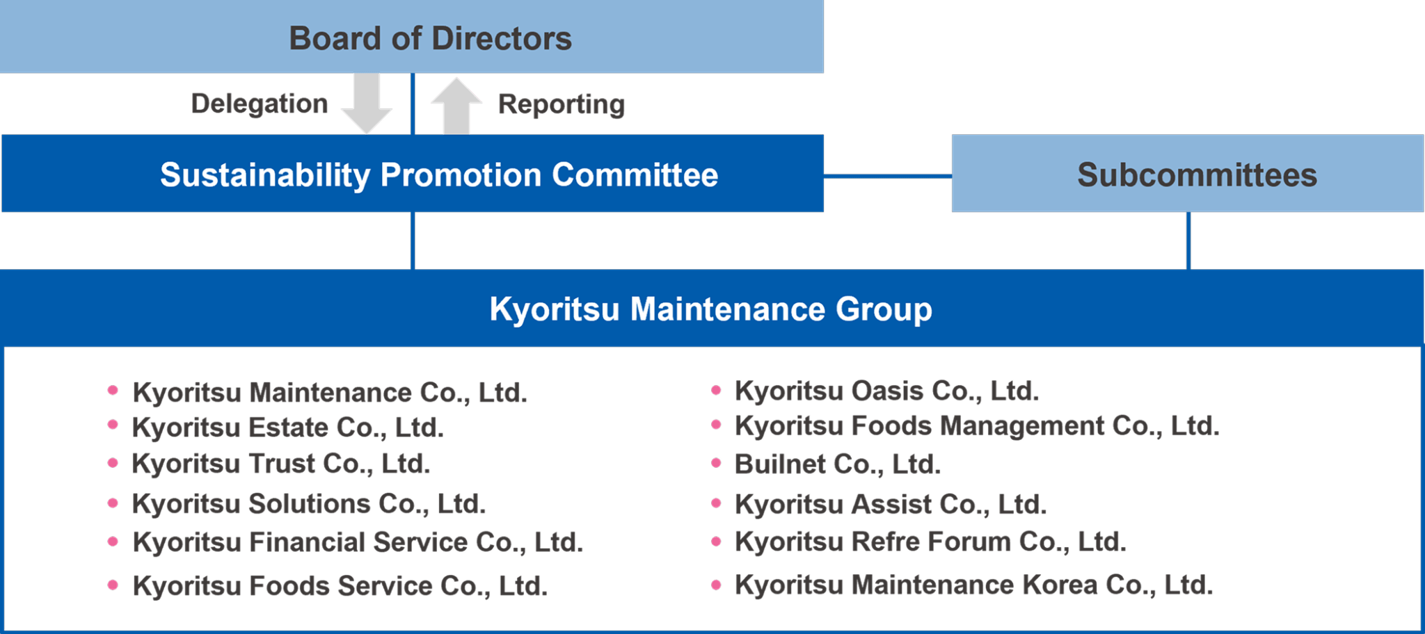 Subcommittees have been established for initiatives to address environmental issues and global warming, and the ESG Promotion Office collaborates with each department to gather and share data on efforts, develop strategies, monitor targets, and improve policies to promote environmental conservation efforts in a unified manner as a company.