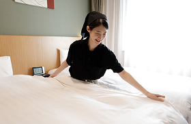 As part of our eco-friendly hospitality, we offer guests staying for consecutive nights a No Cleaning & Sheet Changing Required Card and encourage them to cooperate in the WECO Cleaning for Consecutive Nights program, which aims to reduce water used for laundry.