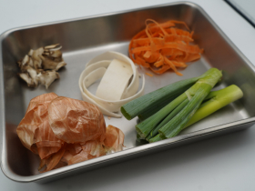 veggie broth made from vegetable peels, cores, and other parts that are often discarded. We develop