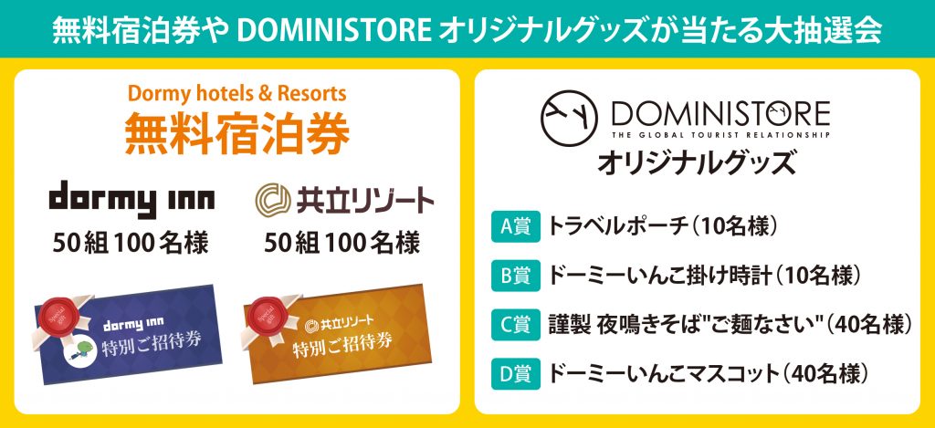 〜無料宿泊券100組200名様&DOMINISTOREグッズが100名様に当たる抽選会も!〜