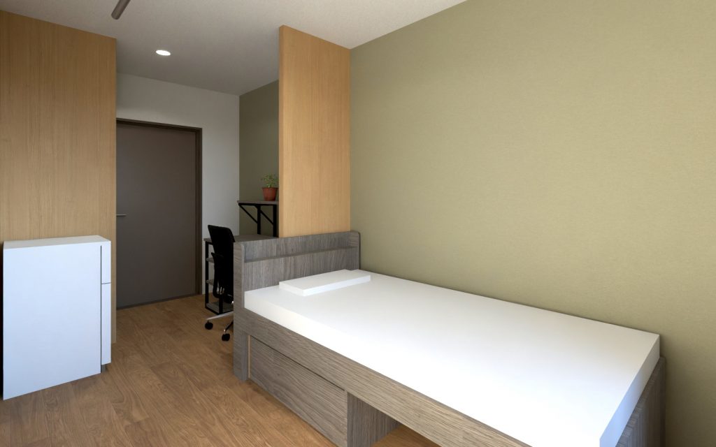 | 居室設備 | エアコン/Wi-Fi/ベッド/机/椅子/電気スタンド/照明器具/カーテン/冷蔵庫/物干し |