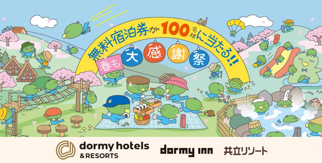 全国でビジネスホテル「ドーミーイン」やリゾートホテル「共立リゾート」を運営する株式会社共立メンテナンス(以下、共立メンテナンス/代表取締役社長:中村 幸治/本社:東京都千代田区)は、現在開催中の「冬の大感謝祭キャンペーン」を、3月2日(月)より名称を改めて「春も大感謝祭キャンペーン」として継続実施いたします。ドーミーインと共立リゾートが贈る特別なキャンペーンで、この春のご旅行を、もっと楽しく、もっとおトクに。この機会にぜひご活用ください。
