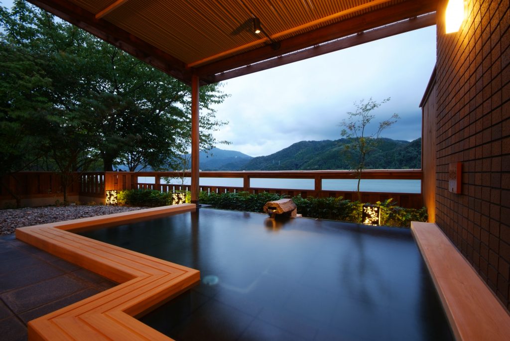 「城崎 円山川温泉 銀花」は、約2000坪と広大な敷地に客室はわずか16室と贅沢な造りとなっています。穏やかに流れる一級河川・円山川の景色を眺めながら入る露天風呂では、静寂の中で心が解き放たれるような解放感を味わうことができます。