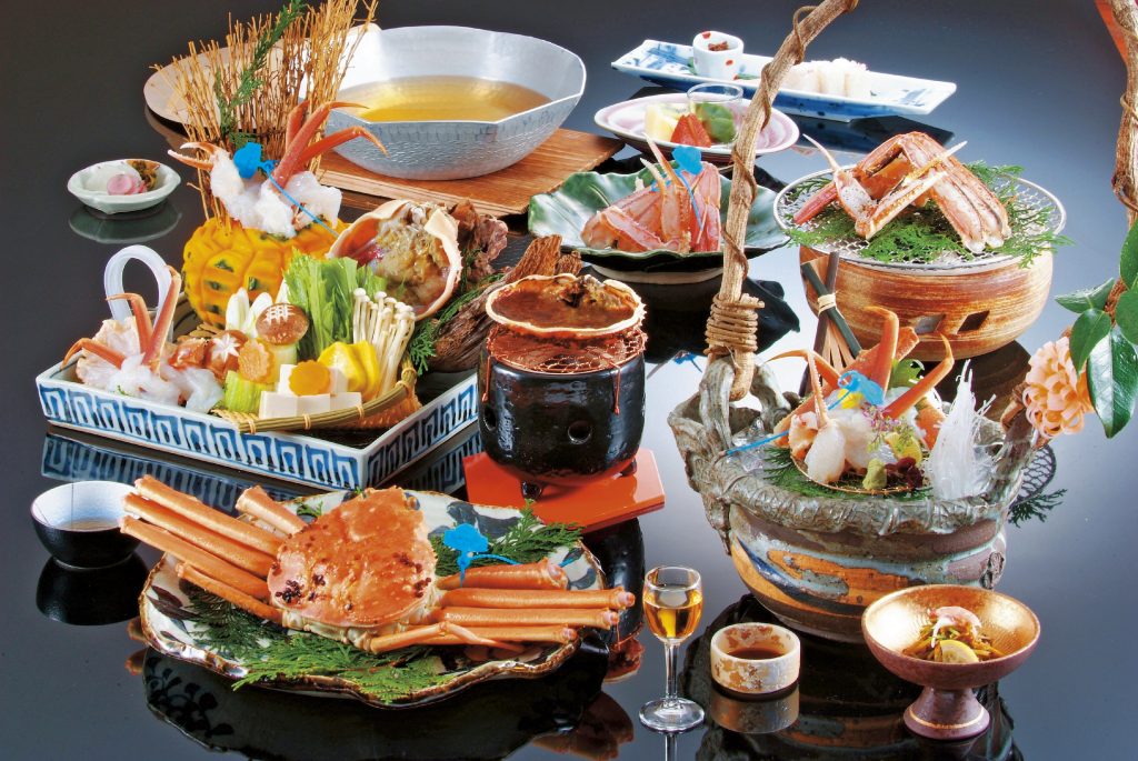 温泉で心も体も温まった後の夕食は、城崎名物の松葉ガニをふんだんに使用した「かにフルコース」を冬季限定でご用意しております。