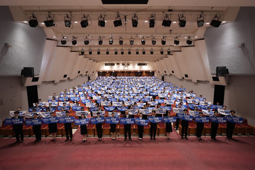 今年の入社式では、代表取締役社長 中村幸治の挨拶から始まり、代表者への辞令交付に続き、新入社員代表が社会人としての決意を宣誓。主体的に学び、お客様に感動を届けたいという、熱意に溢れた力強い決意表明がなされました。会場は、社会人としての第一歩を踏み出した新入社員たちの清々しい緊張感と、これからの共立メンテナンスグループを担う新しい力への期待感に包まれ、一人ひとりがプロフェッショナルとしての自覚を胸に刻む、記念すべきスタートの日となりました。