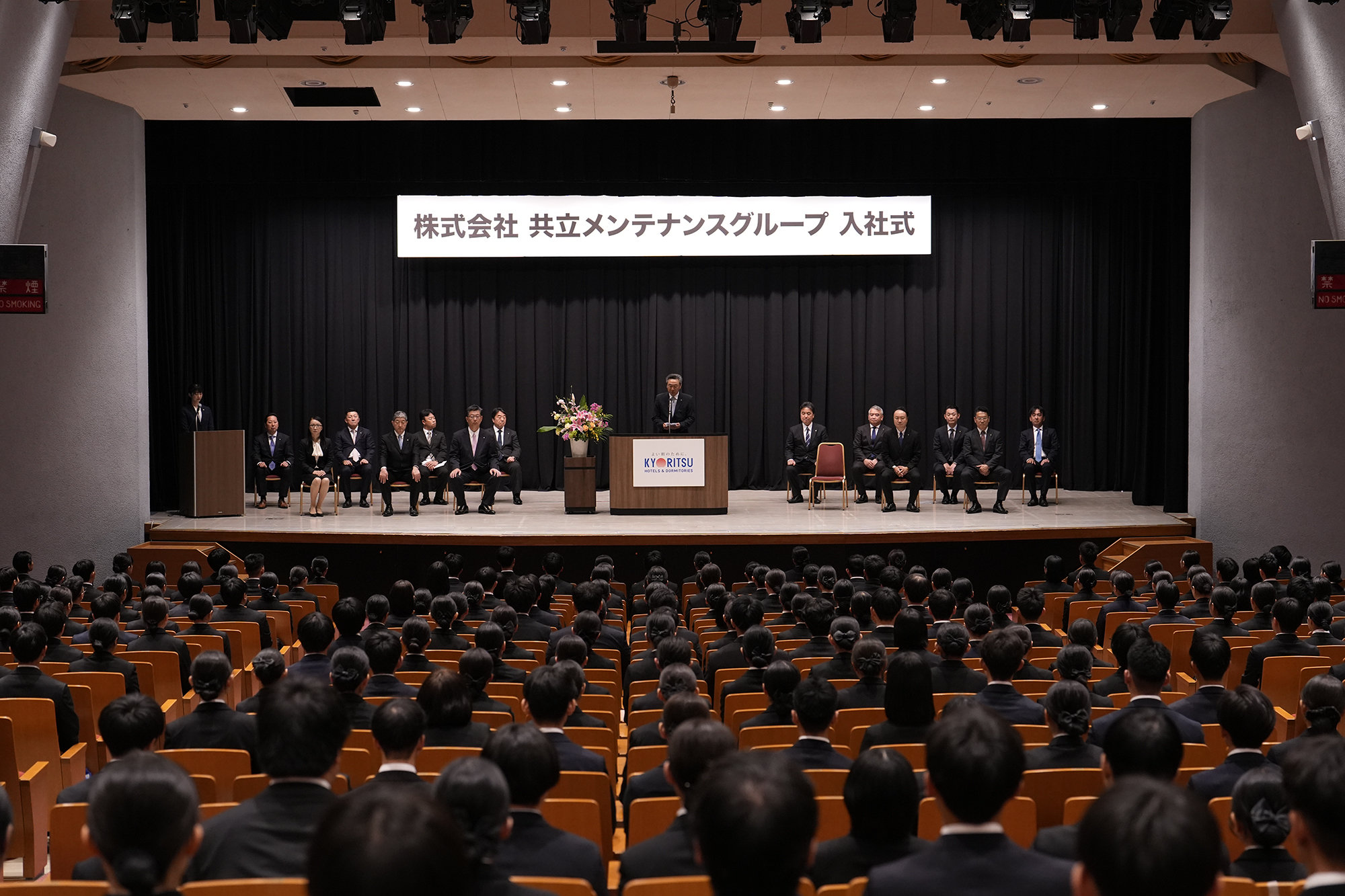 皆さんは今日この時から共立メンテナンスグループの一員です。思う存分に力を発揮して、一日も早く「お客様から笑顔を頂けるプロフェッショナル」になっていただけることを願って、私のお祝いの言葉とさせていただきます。ともに歩んでいきましょう!(一部抜粋)