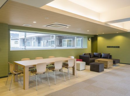 コンセプトは、「都会のおしゃれで居心地の良い空間」で、寮内の壁紙やテーブル、椅子などの家具も温もりのある木目調と色合いで統一しています。居室には、入居当日から快適にお住まいいただくため、生活に必要な家具・家電を備え付けています。また、全室に専用Wi-Fiを完備しているため、オンライン授業も快適にご受講いただけます。ラウンジや広々としたキッチンルームなど、充実したパブリックスペースもご用意しており、ご入居者同士で、新しい出会いや日常的な交流をすることが可能です。体調管理の基本となる食事は、管理栄養士が考案したバランスの良い食事メニューを朝夕2食にてご提供いたします。寮には、専用ICキーでのみ入ることができ、女性専用フロアもあるため安心してお過ごしいただけます。また、管理人(寮長・寮母夫妻)が常駐しており、万が一の際にも生活をサポートできる環境を整えています。