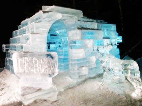 氷点下の北海道ならではのイベントとして2019年より始まったラビスタ阿寒川のアイスBARは、新型コロナウイルスの影響により3年ぶりの開催となります。ホテルの敷地内に120本の角氷を使用した氷のドームを築き、ドームの入口にはヒグマの親子の氷像が皆さまをお迎えします。氷そのものの美しさを最大限に活かすため照明にもこだわり、氷に映る光で幻想的な『非日常空間』を演出しています。