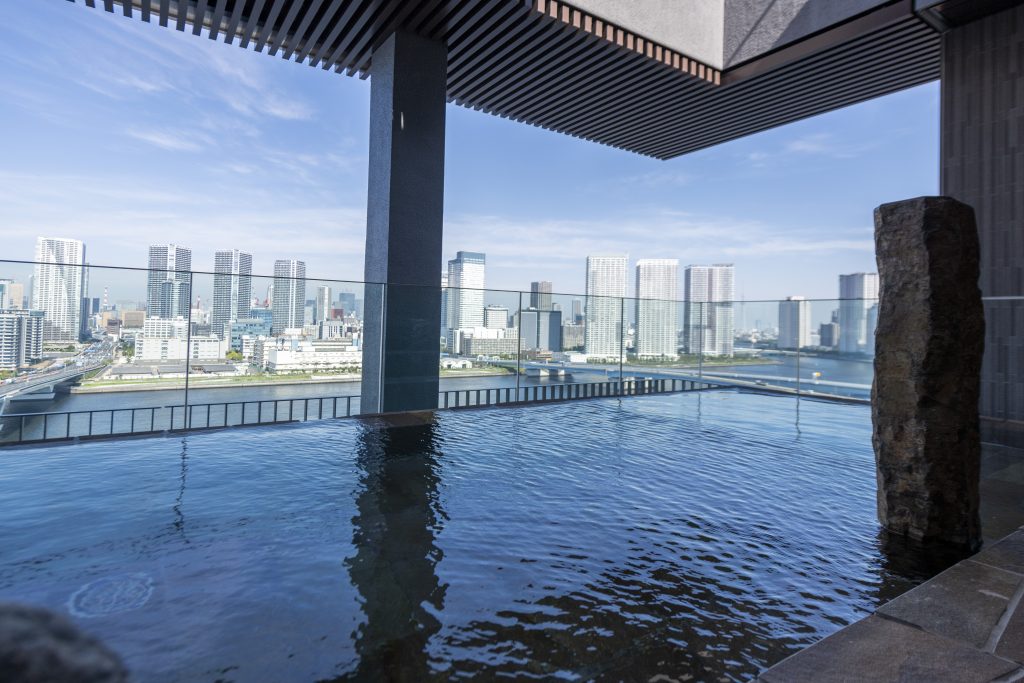 最上階には、東京の街並みや夜景を一望できる天然温泉の眺望大浴場を完備。多彩な湯舟やサウナに加え、開放感あふれる露天風呂もあり、きらめく海とビルの光を眺めながらの湯浴みでパワーチャージしていただけます。