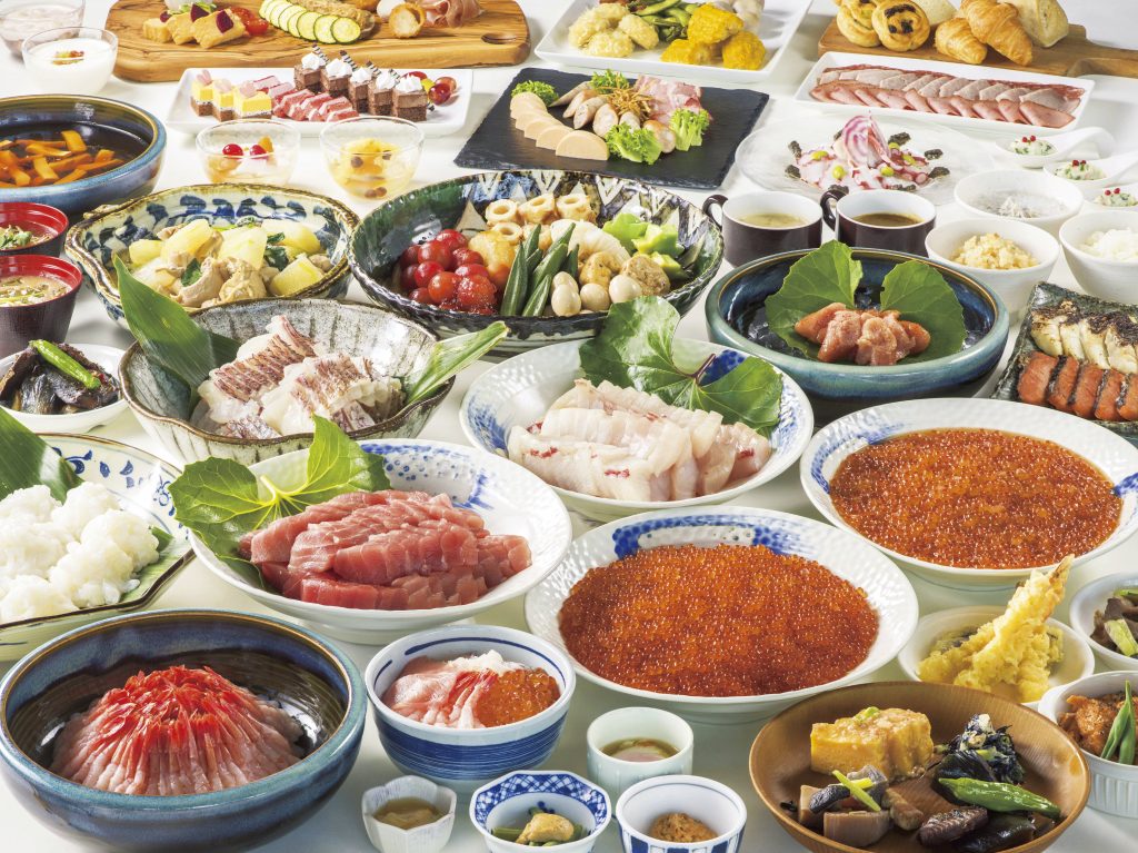 大浴場と同じフロアには、リゾート感漂うインフィニティ風の屋内プールやジャグジーを完備。大きな窓からは、パノラマ写真のような都会の街並みを一望できます。スタイリッシュで高級感あふれる客室は、共立リゾート最大規模となる全582室をご用意。上層階にはビューバスを備えたハイグレードの「ラビスタルーム」があり、首都・東京の壮大な景色を眺めながら湯浴みをお愉しみいただけます。朝食は、豊洲市場のお膝元にふさわしい彩り豊かな旬菜をバイキングスタイルでご提供します。