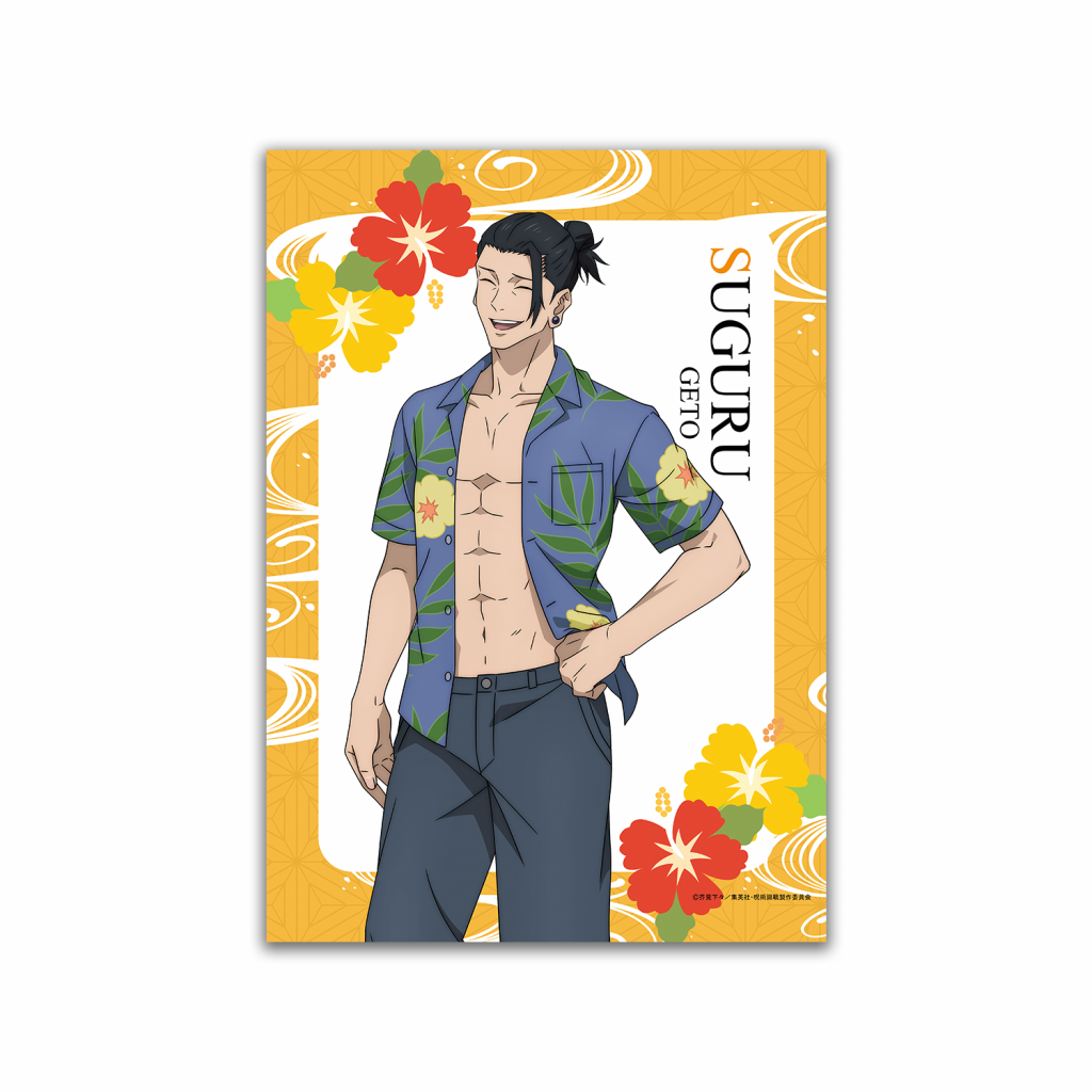 7月6日(木)よりスタートしたTVアニメ『呪術廻戦』第2期「懐玉・玉折」。ストーリーの中で沖縄が舞台となり、TV放送される期間に合わせて7月28日(金)より沖縄コラボキャンペーンが開催されます。ザ・ビーチタワー沖縄では、ひとときのバカンスを満喫するキャラクター「五条 悟」と「夏油 傑」の等身大パネルをホテルロビーに展開し、撮影スポットとして設置します。また、ホテル売店「ちゅらちゅら」では、沖縄バージョンの缶バッジやアクリルスタンドなどの各種オリジナルグッズを販売します。その他にも、ホテルに隣接する「美浜アメリカンビレッジ」の各店舗にてスタンプラリーを開催。スタンプを6個あつめると、特製ポストカードをプレゼントします。