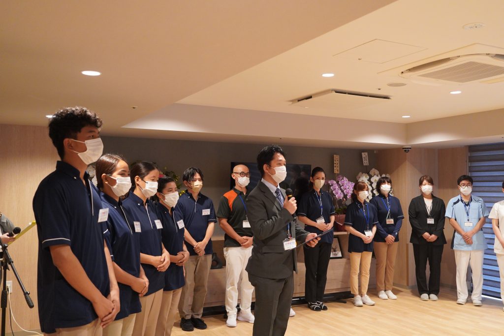 開所式には、建物のオーナーである大和ハウス工業株式会社様、目白台豊川町会様など関係会社の方々にご来賓いただき、シニアライフ事業本部 取締役本部長 君塚がドーミー目白台の完成にともない感謝の辞を述べました。