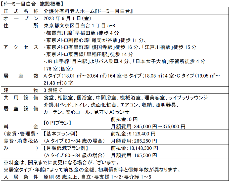 2023年に9月1日にオープンした介護付有料老人ホーム「ドーミー目白台」(以下、ドーミー目白台)の開所式が8月23日に行われました。