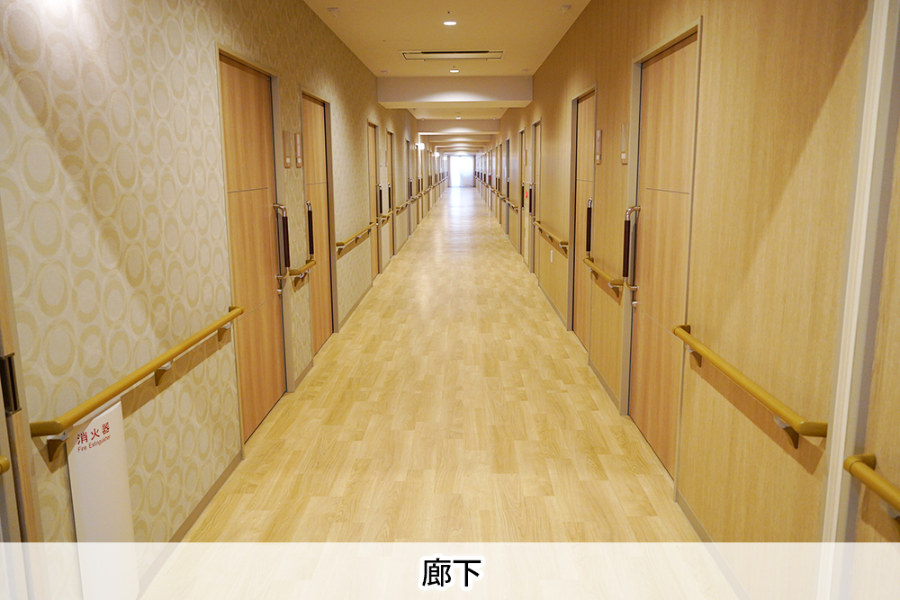 入居者様の運動不足解消や健康促進を目的に廊下を約70mと長めに設計しました。