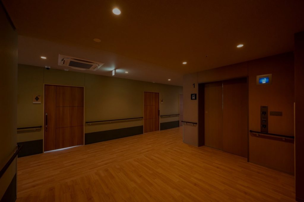 身体のリズムを整える調光調色システムを採用しています。このシステムにより、共用部の照明が時間帯に応じて自動的に調整され、ご入居者様の健康維持に配慮した環境づくりが図られています。