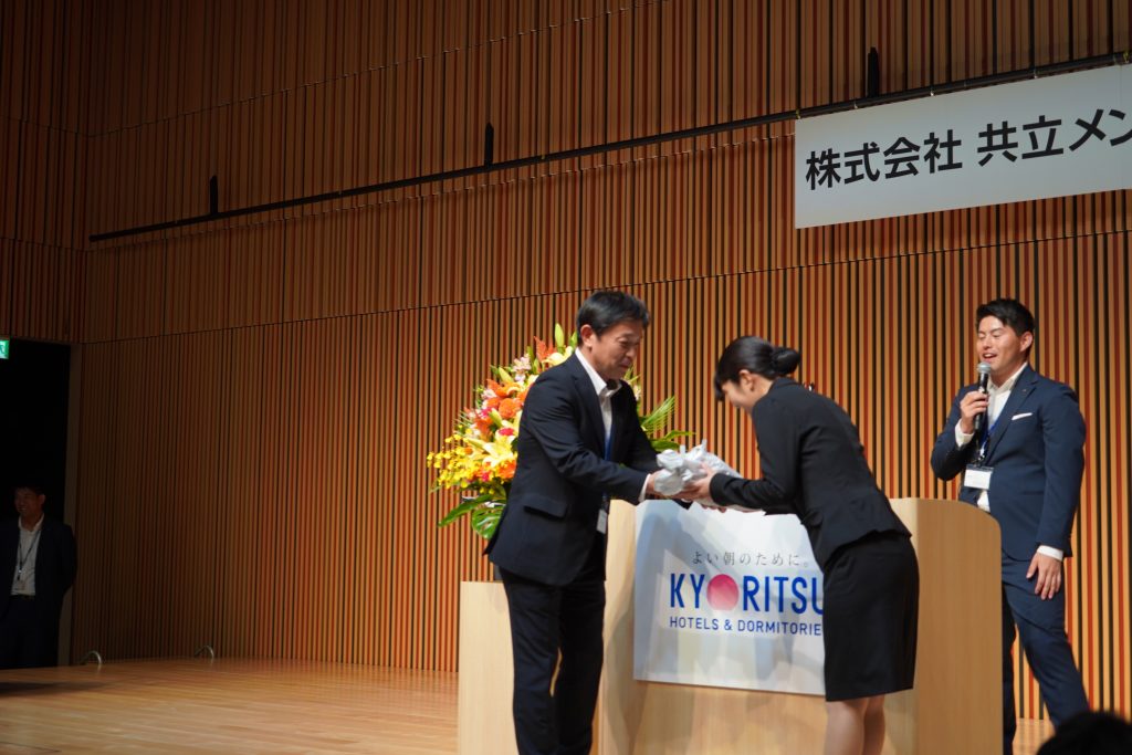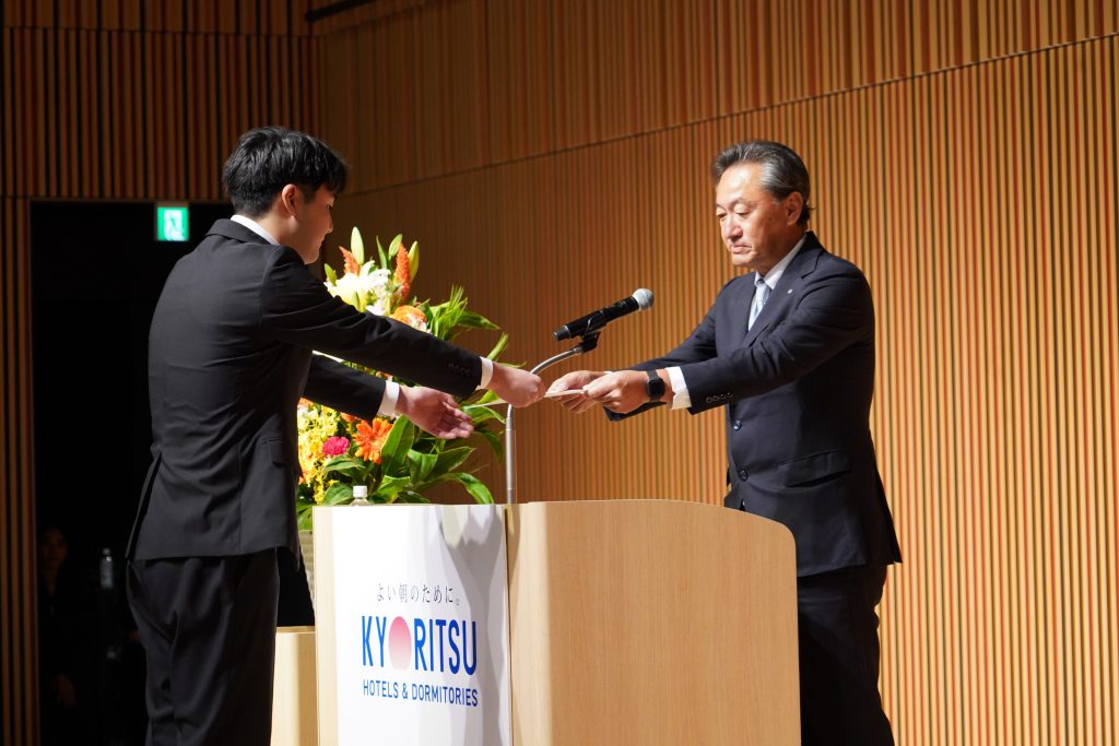 常にお客さまのお役に立つために、またご満足をいただき喜んでいただけるために、自分が求められていること、自分に出来ることは何かを考えてみてください。課題を一つずつ追及することこそが、共立メンテナンスの未来へと繋がります。皆さんが失敗を恐れず前向きに、楽しく仕事に取り組んで頂けることを期待しています。本日は誠におめでとうございます。(一部抜粋)