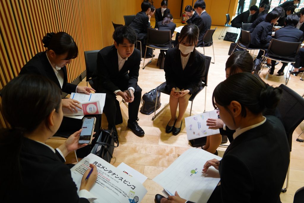 内定式後には懇親会が行われ、同期となる内定者同士のコミュニケーションを図ると共に、当社をより深く知ってもらうために「共立メンテナンスビンゴゲーム」を開催し、知識習得や今後同期となる仲間同士の絆を深めました。