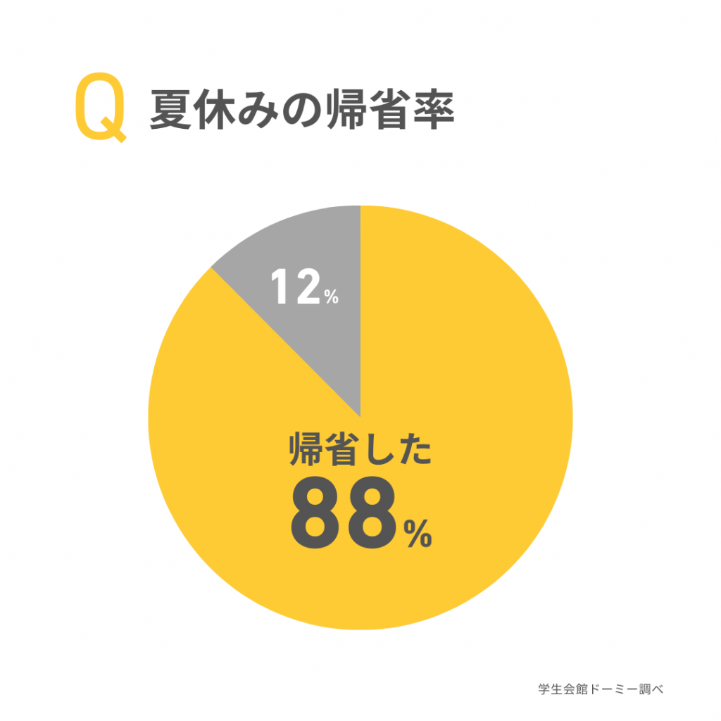 - 今年の夏休みでは約90%の学生が帰省。新型コロナウイルスの影響で対面でのコミュニケーション機会が減少していたため、家族や友人との再会に強い願望があった。