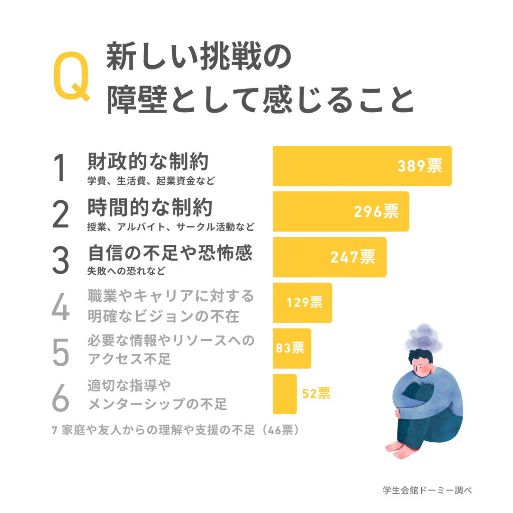 【学生たちの新しい挑戦を阻む、「お金」「時間」「自信の不足」】