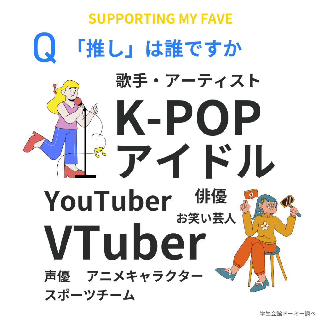 【半数以上の学生が推しを持つ。K-POP、アイドル、Vtuberが人気、広がるファンの多様性】