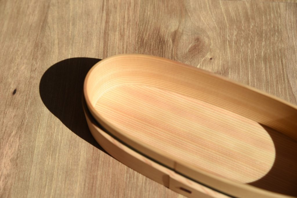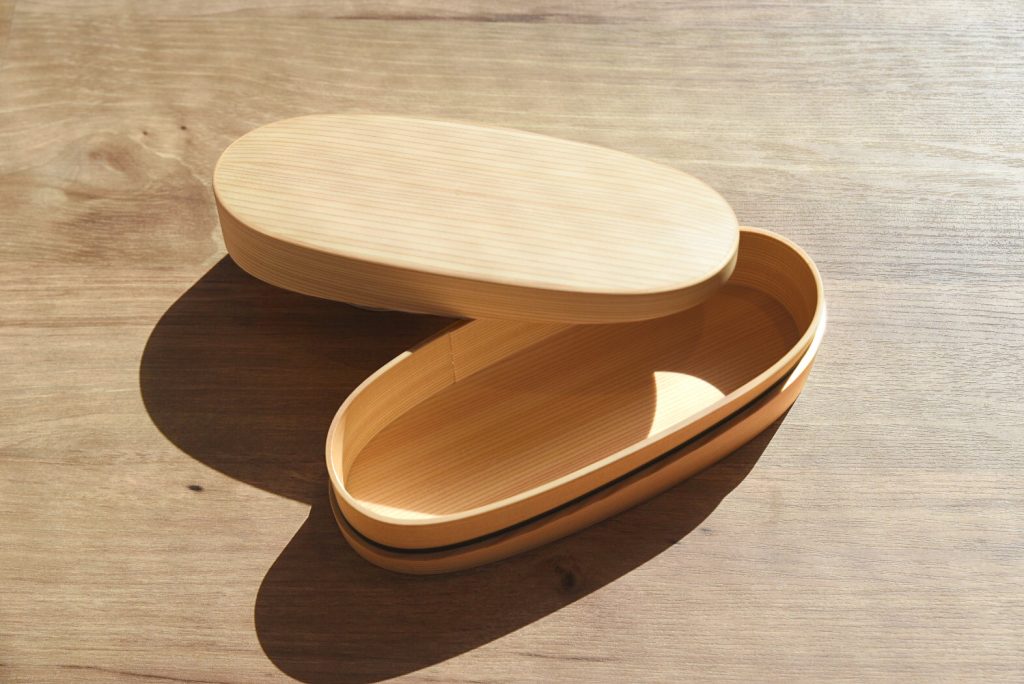 素材は、日本の三大美林のひとつである秋田杉。材質は、国の伝統的工芸品である秋田県大館市の「大館曲げわっぱ」を使用しています。