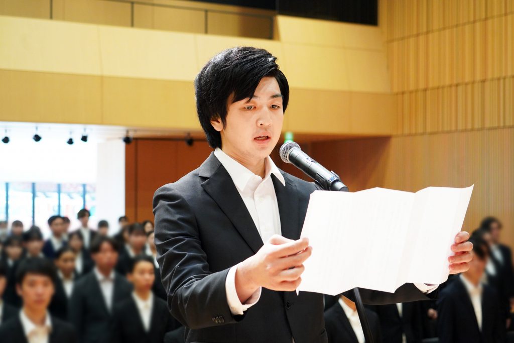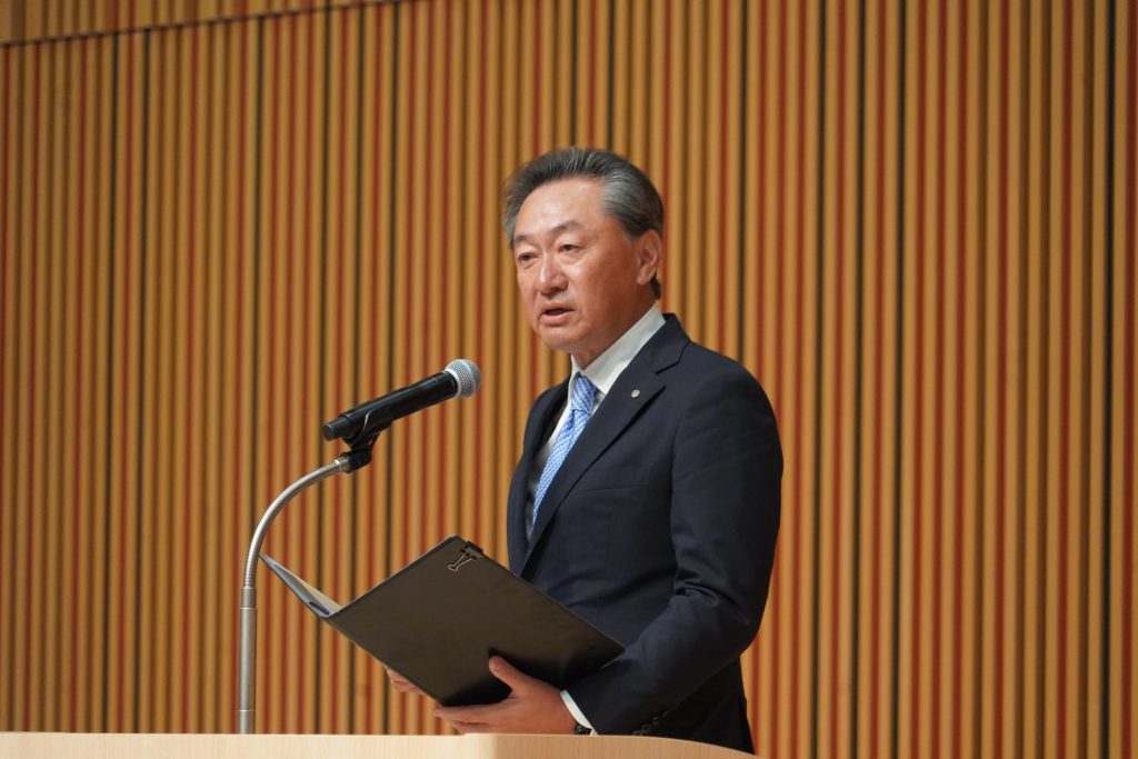 入社後、皆さんにはさまざまな試練と、またそれを乗り越えた後には、湧き上がる喜びが待ち受けていると思います。多くのことにチャレンジし、たくさんの失敗や成功を経験しながら、先輩・同僚・チームとともに成長し続けていただきたいと思います。本日は誠におめでとうございます。 (一部抜粋)