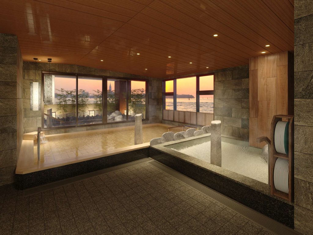 地上10階建て、全152室の客室を備えており、最上階には天然温泉大浴場やサウナ(オートロウリュ)を完備しております。朝食は、ご当地料理「白エビのかき揚げ」や「越前おろしそば」をはじめ、約50種類の和洋バイキングをご用意しています。