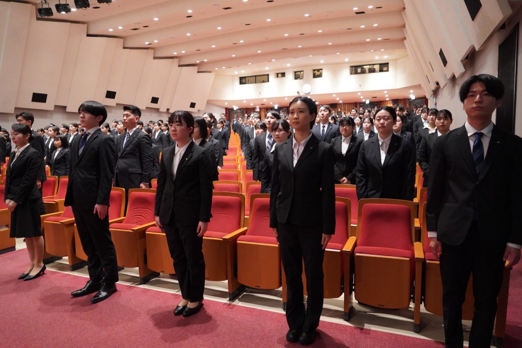 今年の入社式では、代表取締役社長 中村幸治の挨拶から始まり、代表者への辞令交付に続き、新入社員代表が社会人としての決意を宣誓。主体的に学び、お客様に感動を届けたいという、熱意に溢れた力強い決意表明がなされました。会場は、社会人としての第一歩を踏み出した新入社員たちの清々しい緊張感と、これからの共立メンテナンスグループを担う新しい力への期待感に包まれ、一人ひとりがプロフェッショナルとしての自覚を胸に刻む、記念すべきスタートの日となりました。