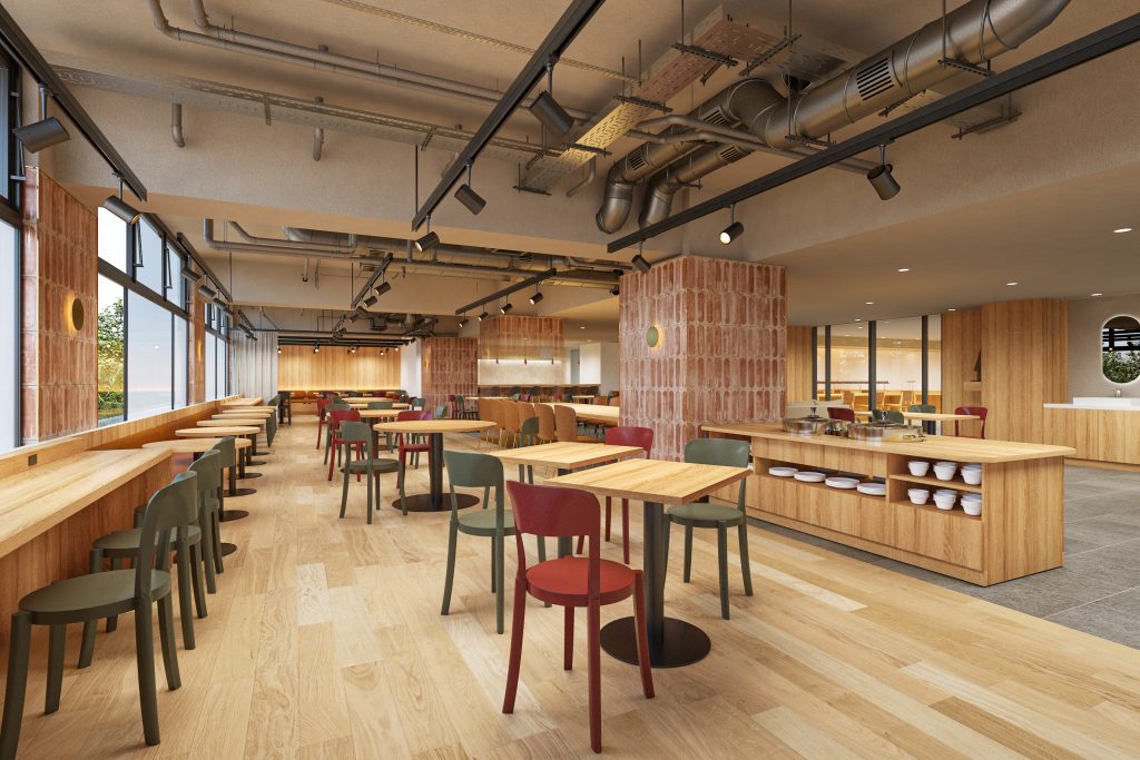 開放的な「オールデイダイニング」や自然と会話が生まれる「コミュニケーションルーム」など、交流を促進する設備が充実。一方で、学習に没頭できる「スタディルーム」や音を気にせず過ごせる「防音ルーム」が備わっており、気分や目的に合わせて使い分けられる、大規模寮ならではの充実した共用部です。
