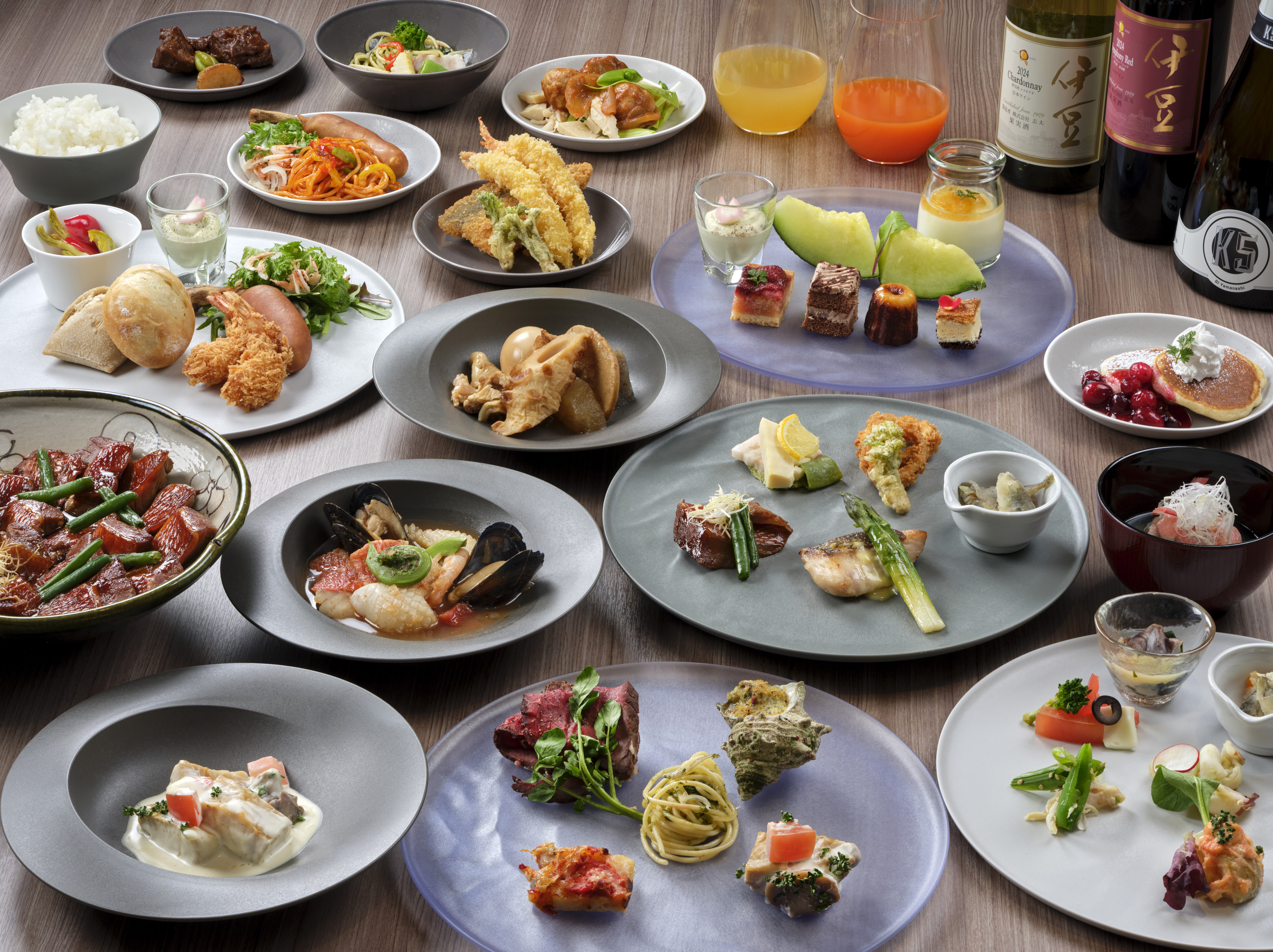 夕食は、旬の食材を活かした「バイキング」もしくは、一品ずつ趣向を凝らした「会席料理」、朝食は、地元食材を取り入れた「和洋バイキング」または落ち着いた空間で味わう「和定食」をご提供しております。