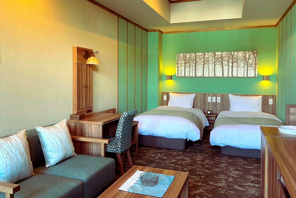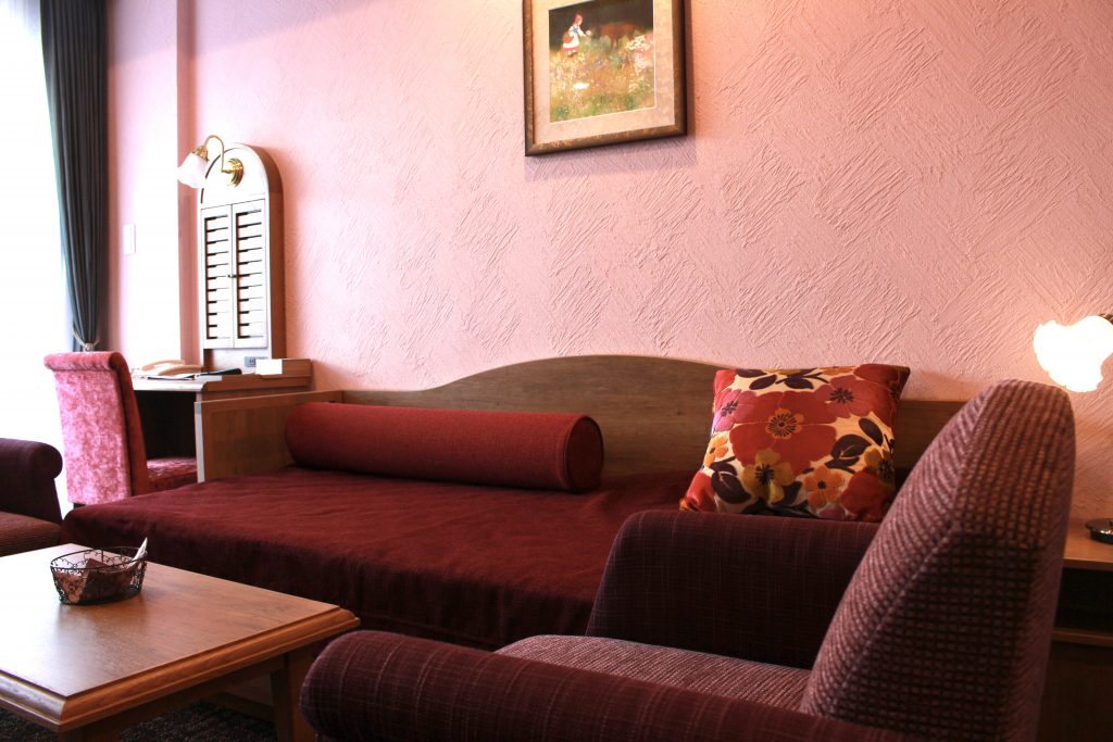 館内は、草津町と歴史的繋がりの深い「ドイツ」に因んだ設えで異国情緒を演出。6階建ての建物中央を貫く吹き抜けには、ドイツ最大の「トリベルクの滝」をイメージした滝が流れ落ち、客室は、グリム童話の「赤ずきん」、「ヘンゼルとグレーテル」、「白雪姫」をモチーフに、3つのデザインでコーディネートされたお洒落な洋室をご用意。異国情緒に溢れた上質な空間が、由緒ある温泉地に新たな風を吹き込みます。