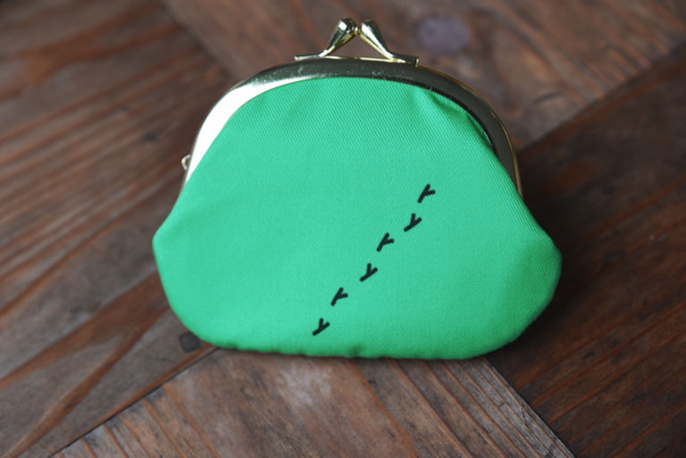 表地は、葛城(かつらぎ)という織り方で作られた丈夫で柔らかい生地を使用。ドーミーいんこの再現性を高くするために、生地やがまぐちの色にもこだわりました。