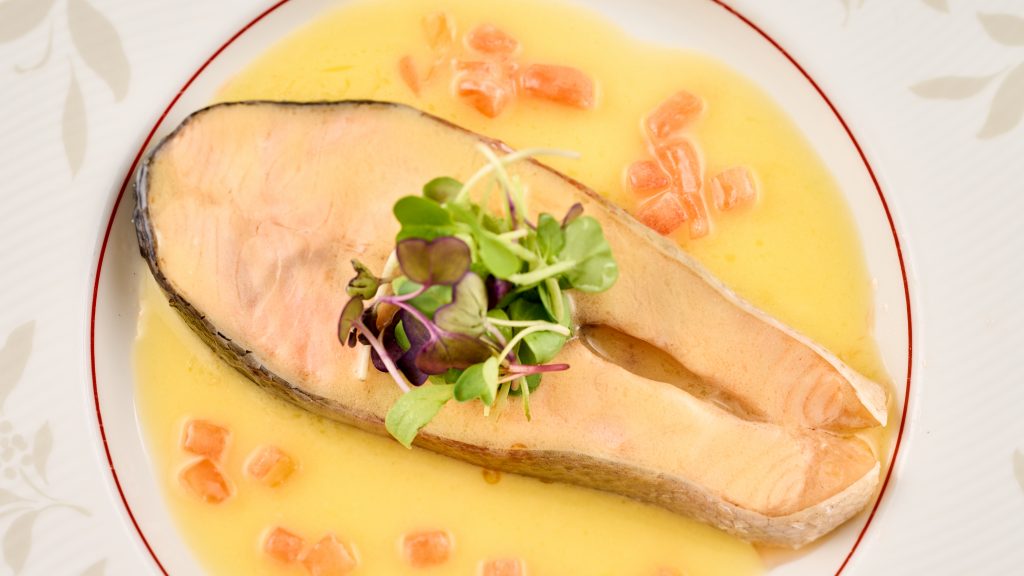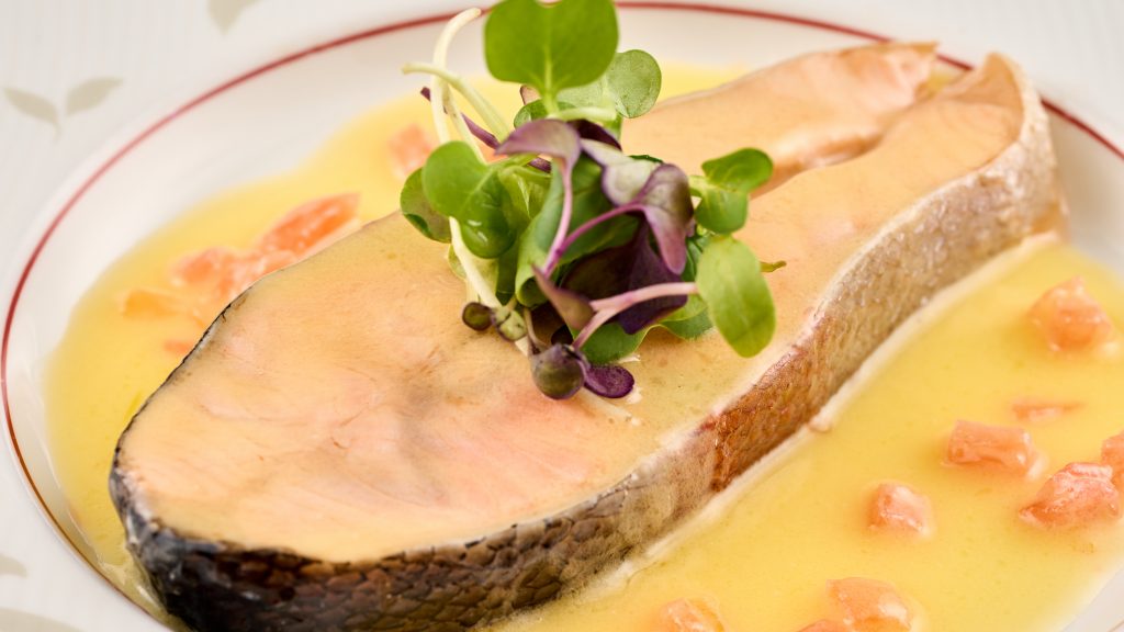 ・北海道二海サーモンの白ワイン蒸し ソースブールブラン:1,500円