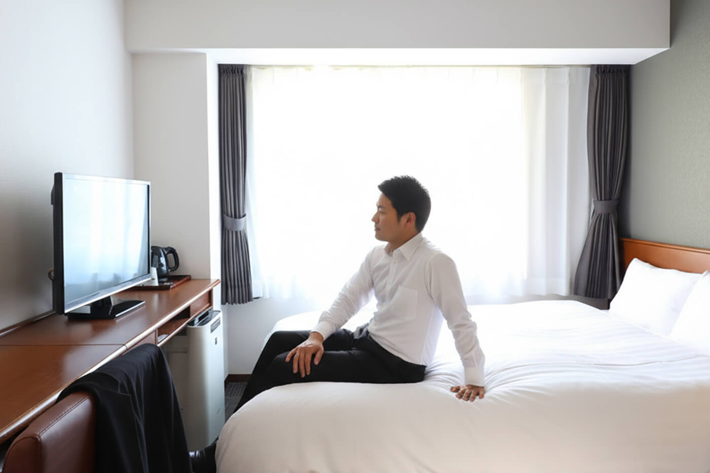 ご出張のお客様が、「次は家族を連れて来よう」と思っていただけるビジネスホテルでありたいと、空間の設えや、アメニティなど、観光でも楽しめるよう演出しています。