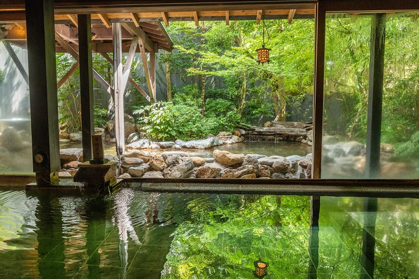 • 個性豊かな大浴場に加え、プライベートな湯浴みが愉しめる客室風呂や無料貸切風呂も充実 (※一部施設を除く)